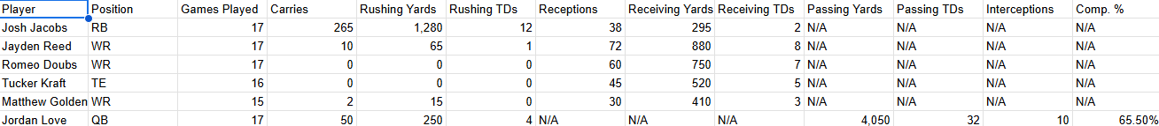 0 Post Comments Gemini’s Final Stats prediction June 21, 2025 • Damon Sewell Damon Sewell Damon is a diehard, fully-immersed Cheesehead who currently lives in southern Missouri. He teaches at a local high school and has a family YouTube channel about all things Packers. Click on the icons below to follow him on social media. X (Twitter)